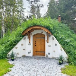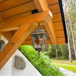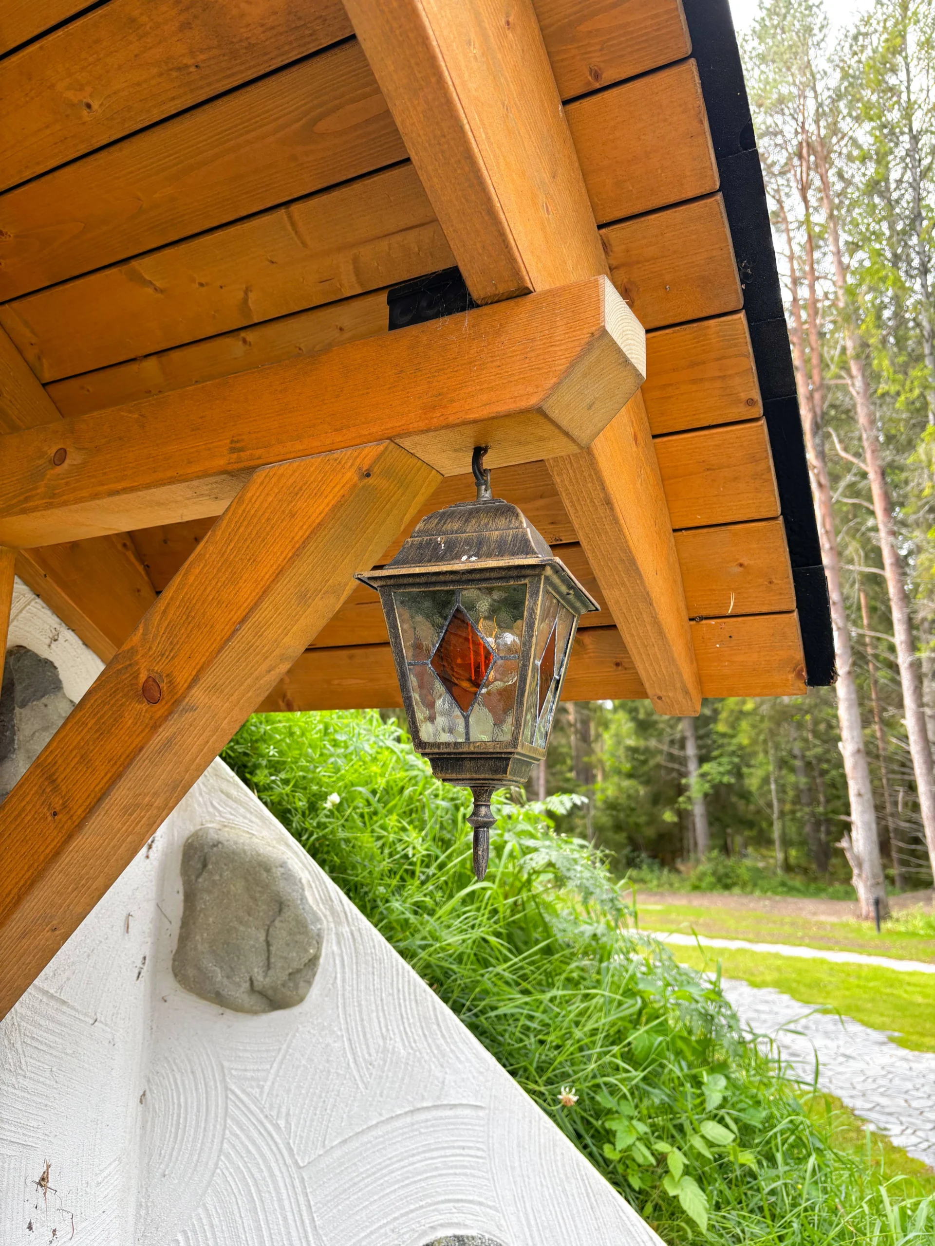 Hiiumaa vaikses metsaservas asub ainulaadne maakelder. Valge krohvitud fassaad koos looduslike maakividega loob pehme ja orgaanilise ilme, mida raamib soe, käsitööna valminud puitvarikatus. Tugev puituks lisab ehitisele hubasust ja kindlust. Varikatuse all rippuv latern lisab sissepääsule kodust valgust ja ajatut võlu. Kiviplaatidest looklev tee juhatab sujuvalt ukse ette, kus kaks dekoratiivtaime annavad tasakaalu ja hoolitsetud ilme.