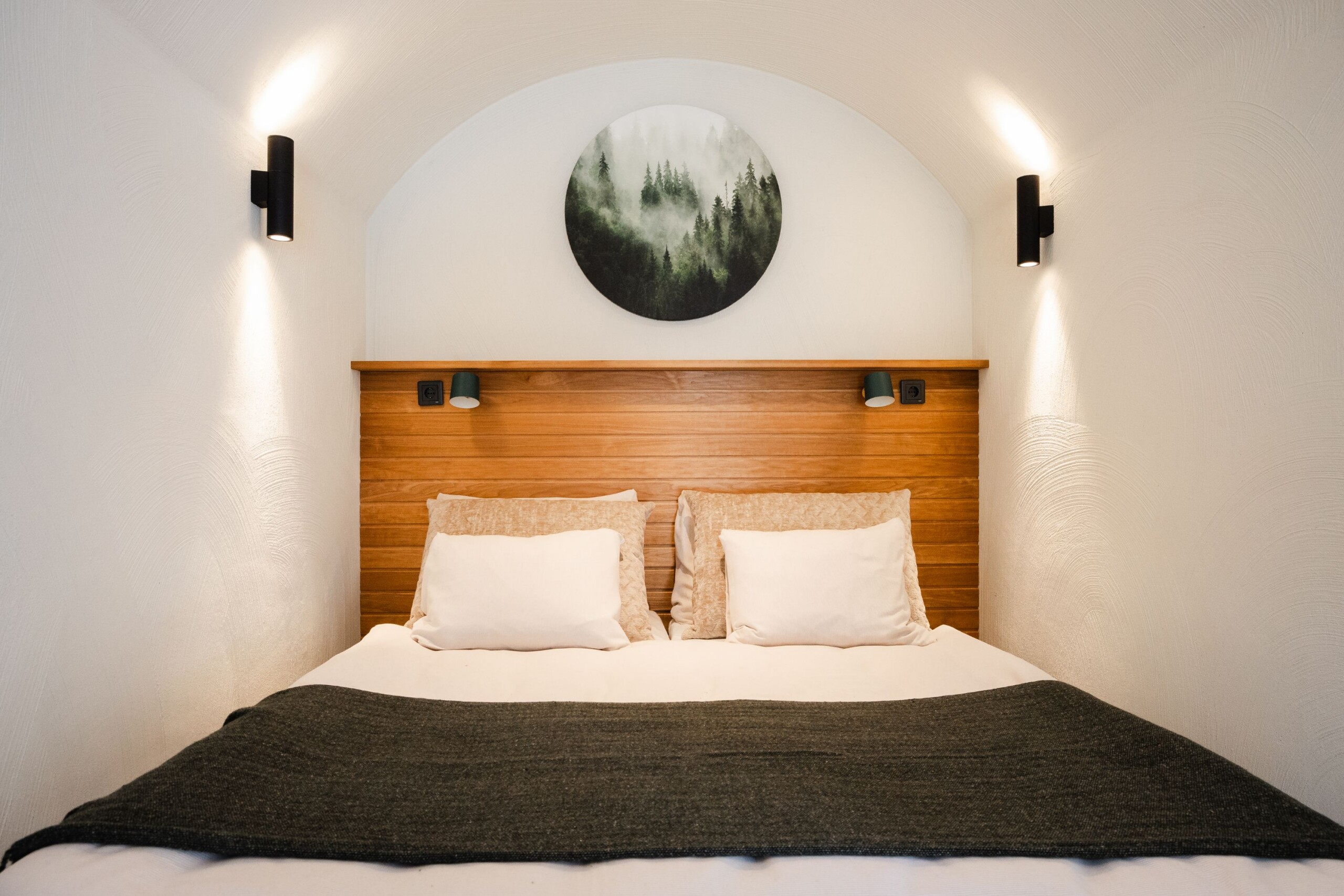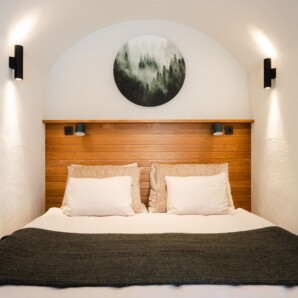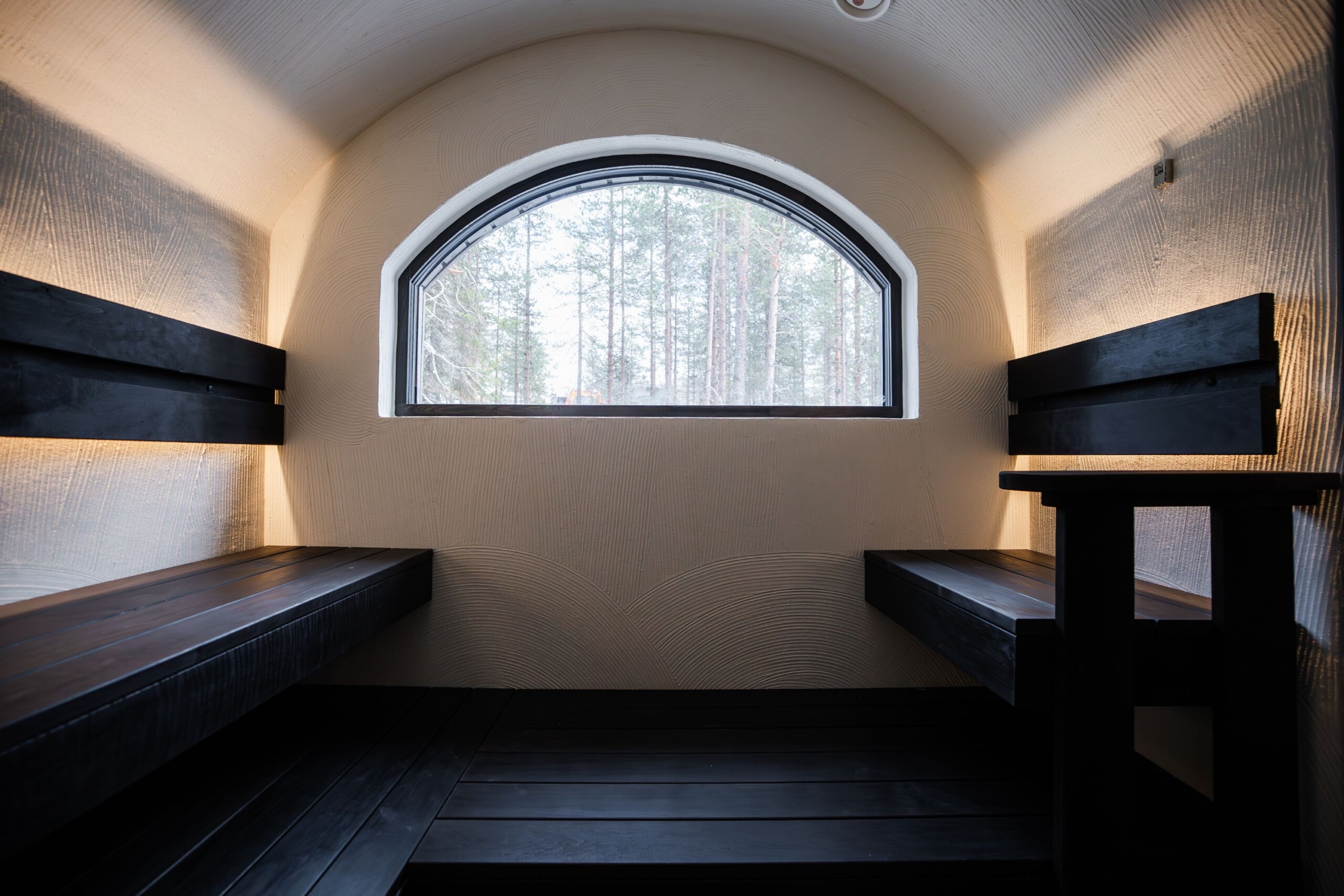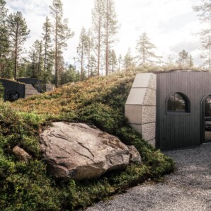 Wir haben 80 modulare, unterirdische Suiten gebaut, die sich natürlich in die Landschaft von Aavasaksa einfügen – als wären sie immer schon dort gewesen. Mit Erde bedeckt und von gewölbtem Beton geformt, halten sie das Raumklima ganzjährig natürlich stabil – bei geringem Energiebedarf.